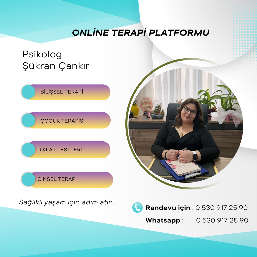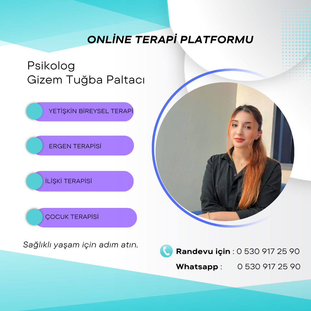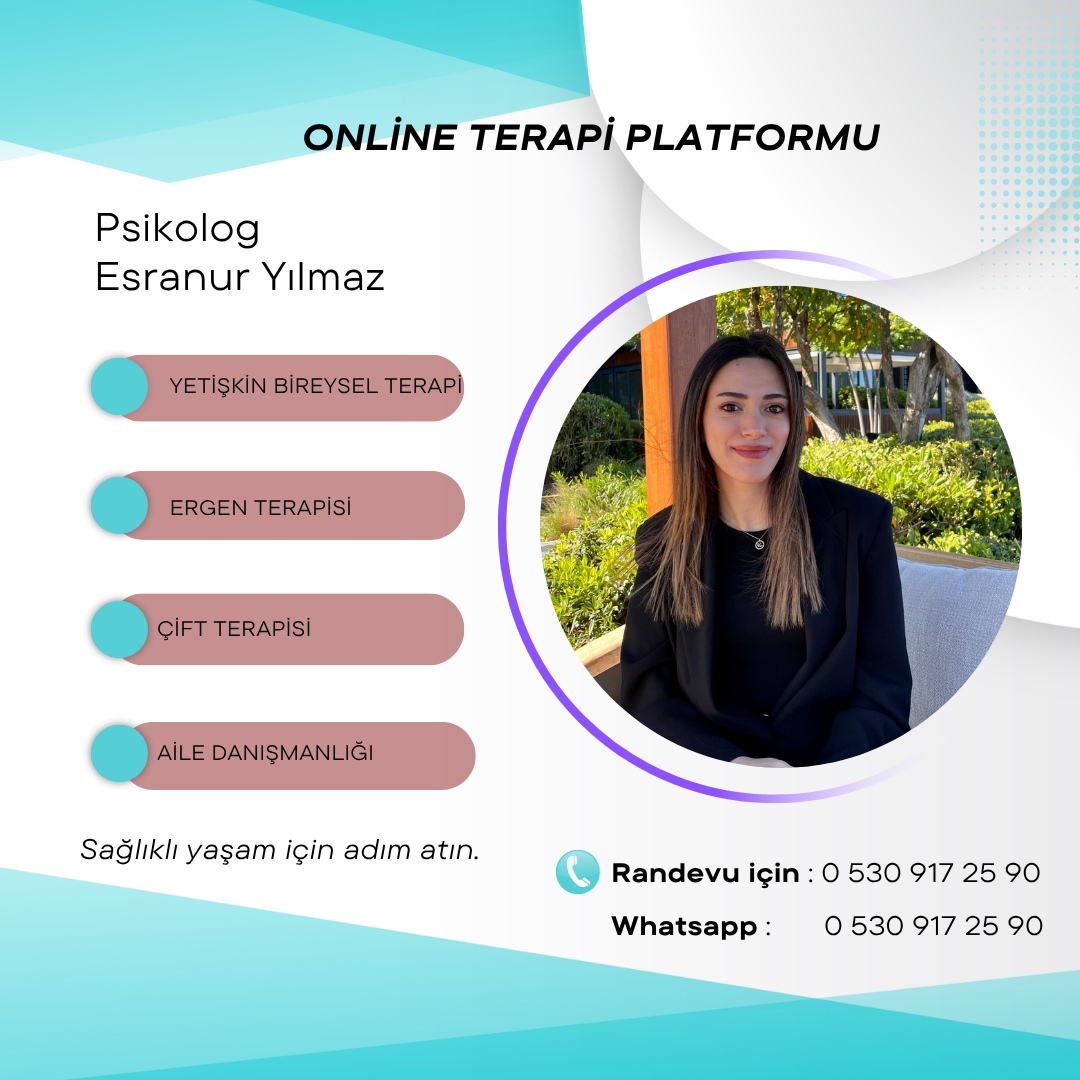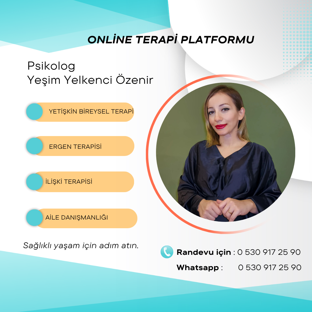 Online Terapi Platformu, bireysel, çift ve aile danışmanlığı hizmetlerini alanında uzman psikologlarla size sunar. Evinizin konforunda, gizliliğinize önem veren güvenli ve etkili bir terapi süreci sizi bekliyor. Kaygı, stres, depresyon, ilişki sorunları ve kişisel gelişim gibi birçok alanda destek alabilir, ihtiyacınıza en uygun terapisti kolayca seçebilirsiniz. İlk seansınızı hemen planlayın, kendinize iyi bakmaya bugün başlayın!